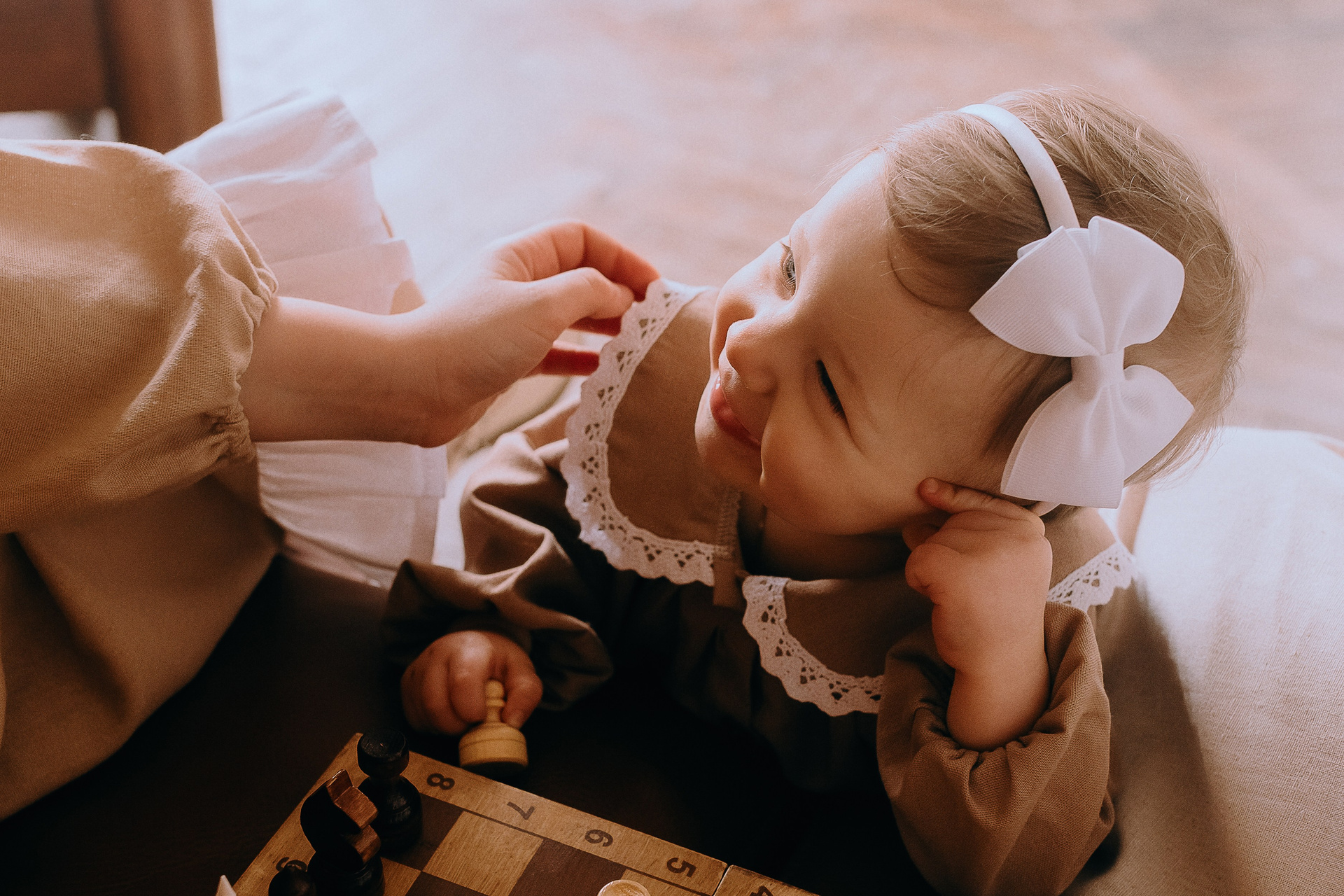 - причешите и уложите ребенку волосы (или пусть это сделает вам ребенок)