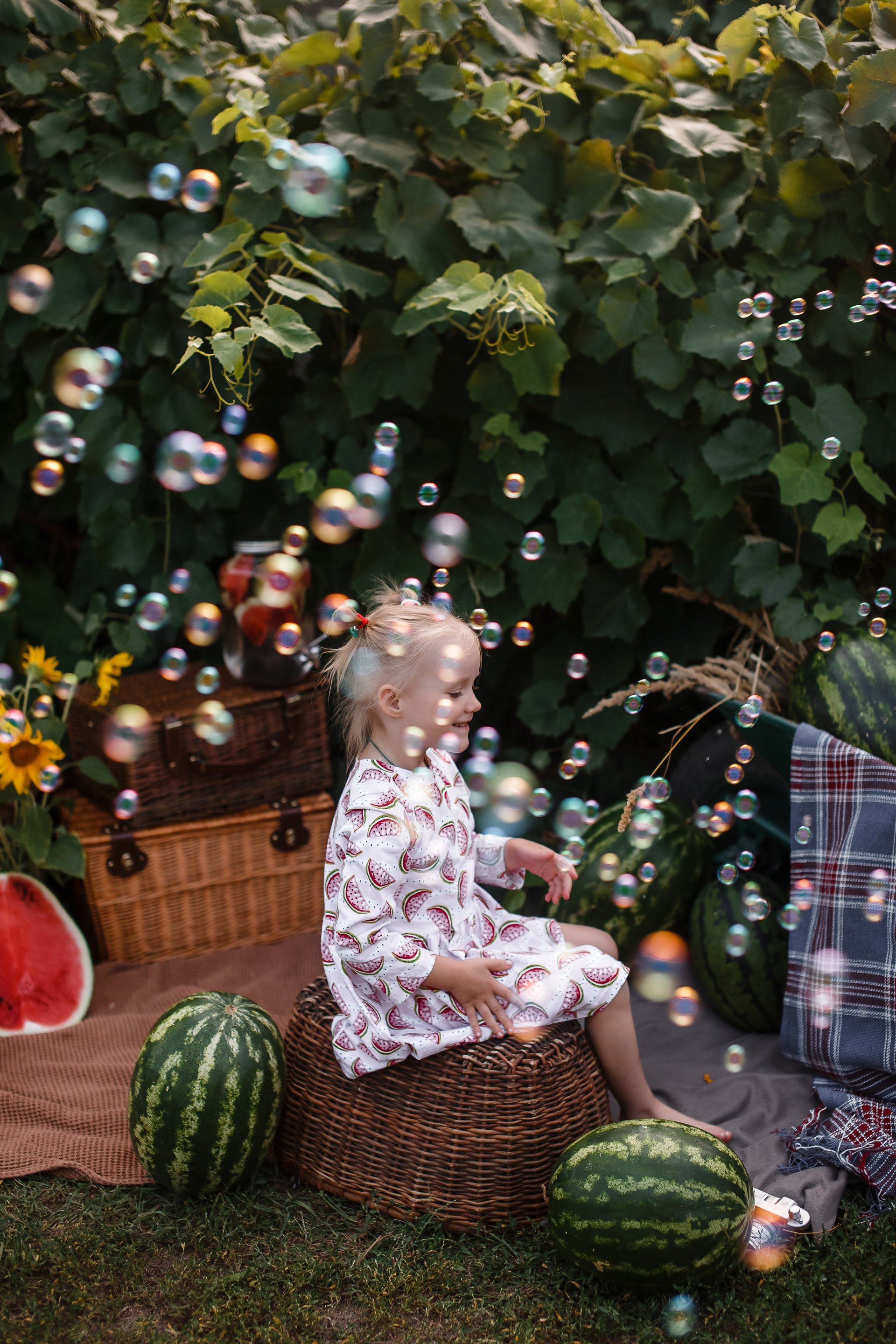 - искупать ребенка в маленьком тазике с фруктами или цветами